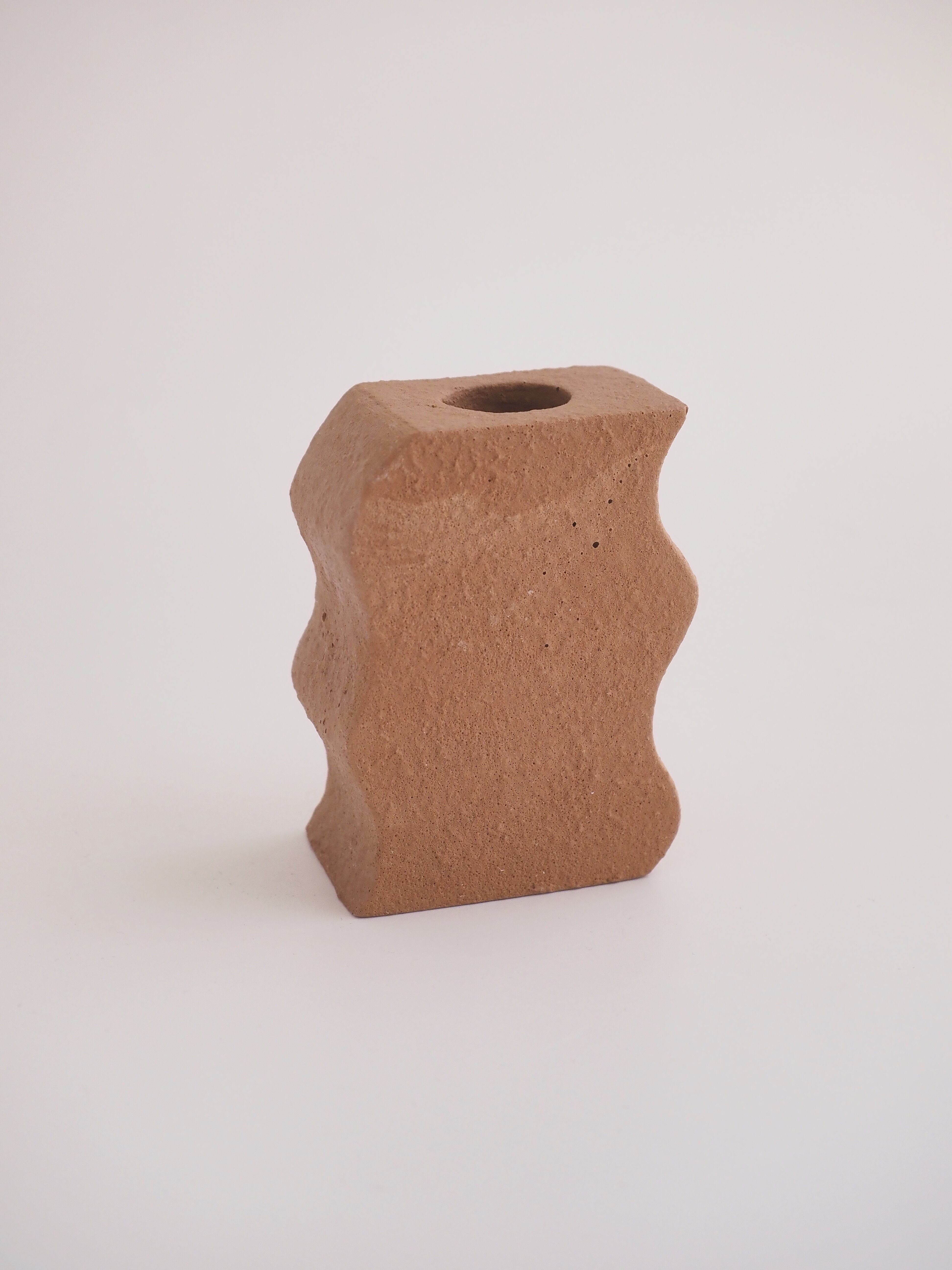 歪みや皺、気泡を残し石をそのまま削り出したような手触りの、ずっしりとした一輪挿しです。