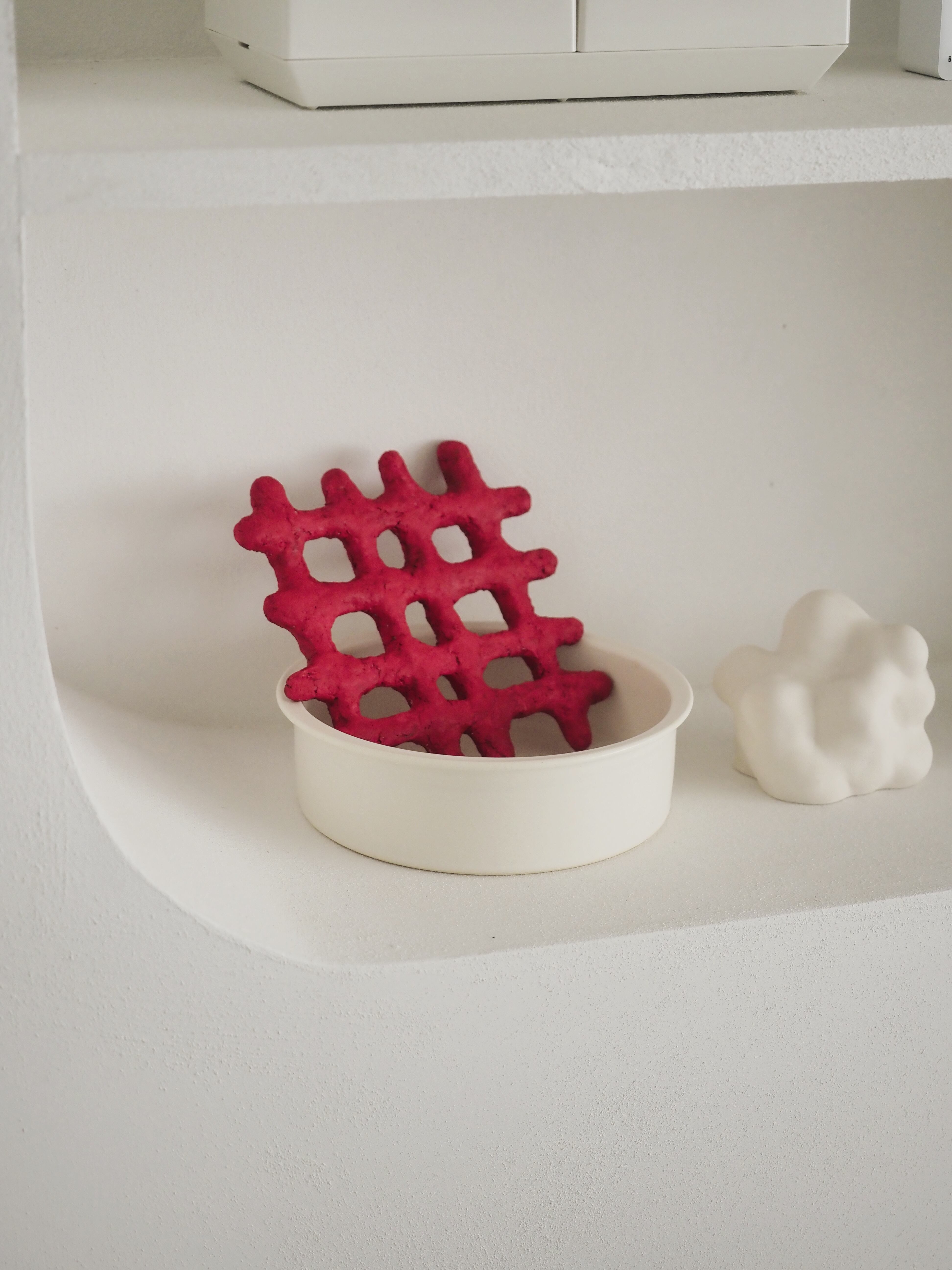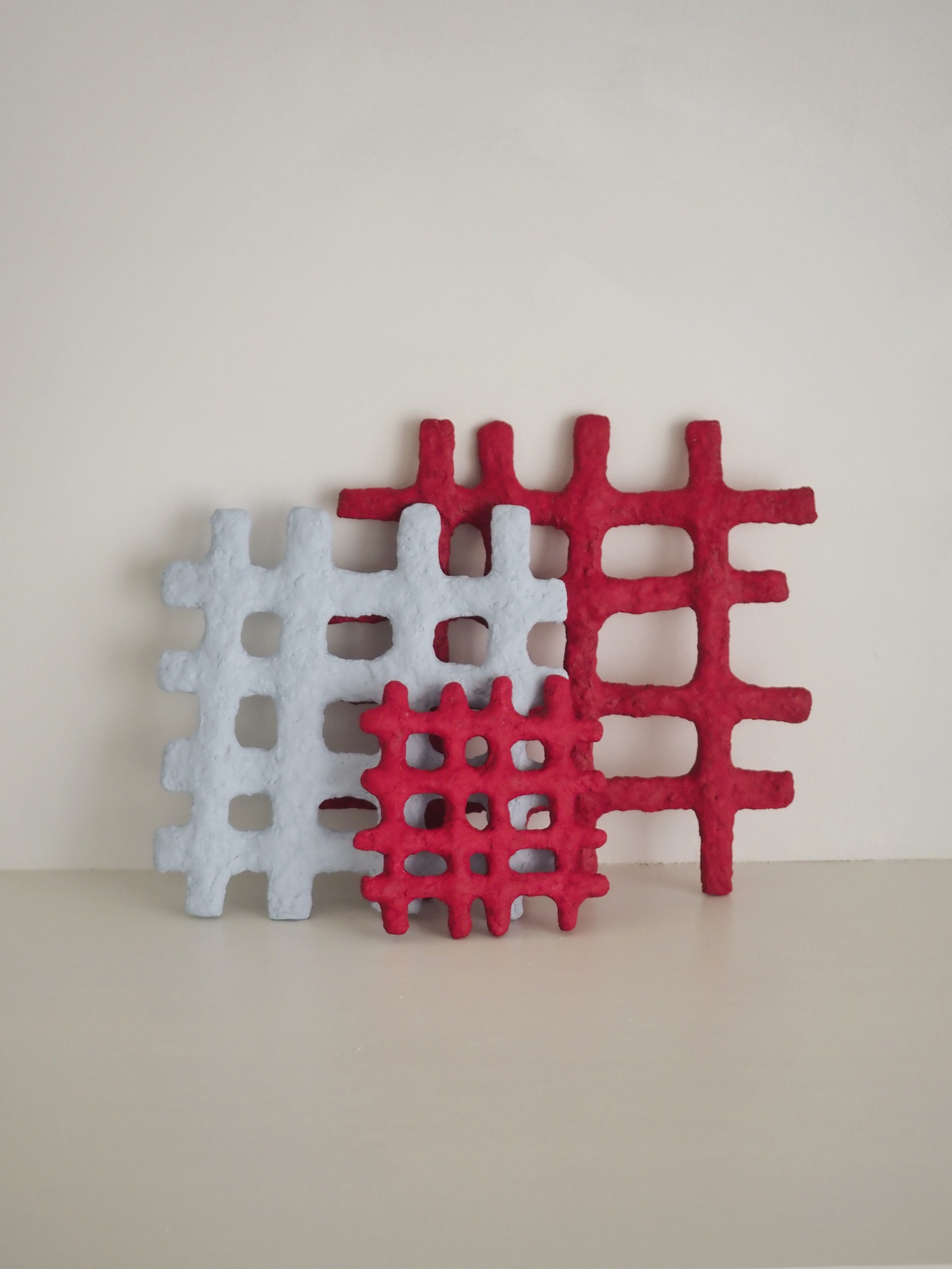 制作の過程で生まれた資源を再利用し、オリジナルのパピエマシェ粘土で成形しています