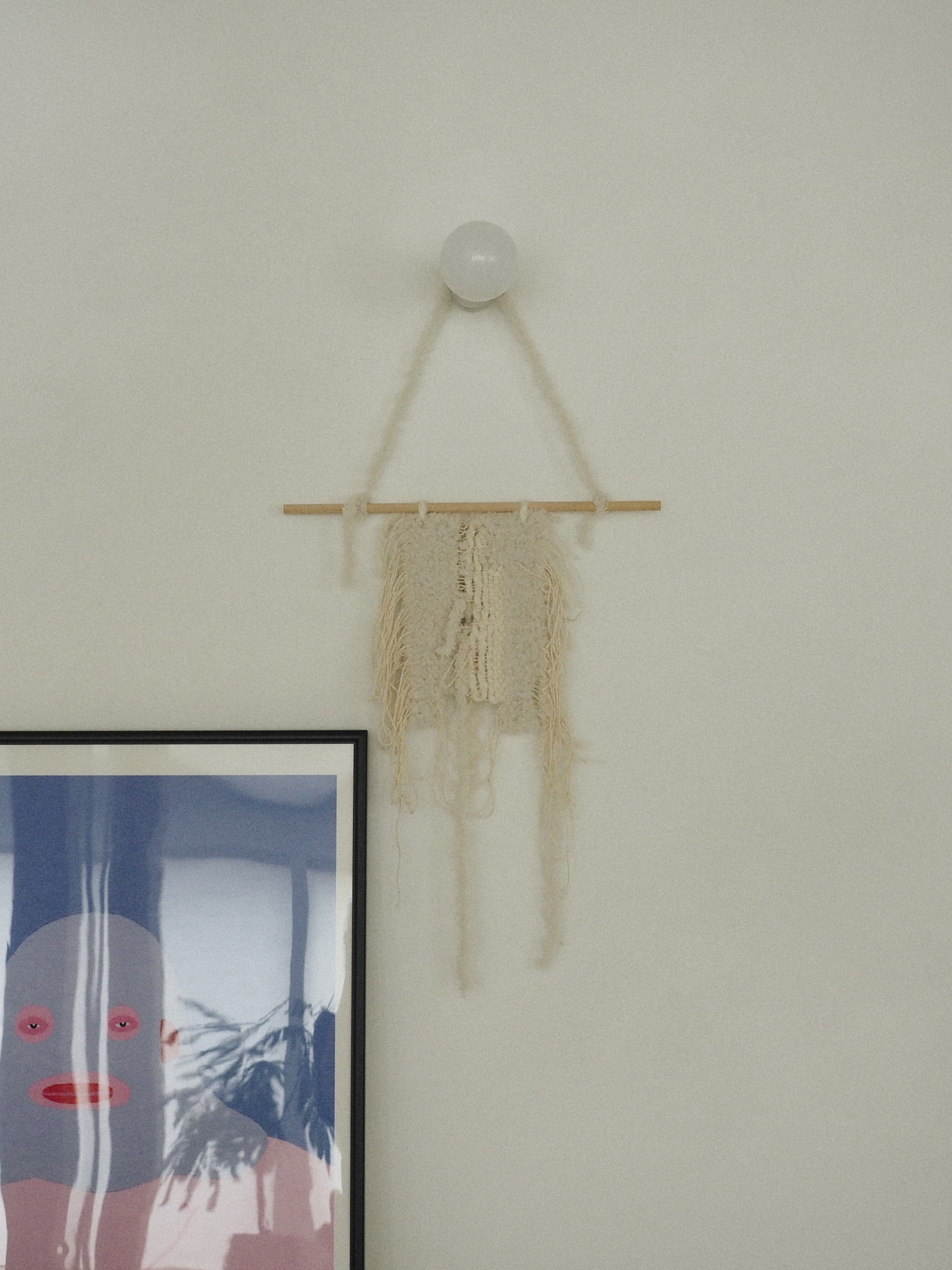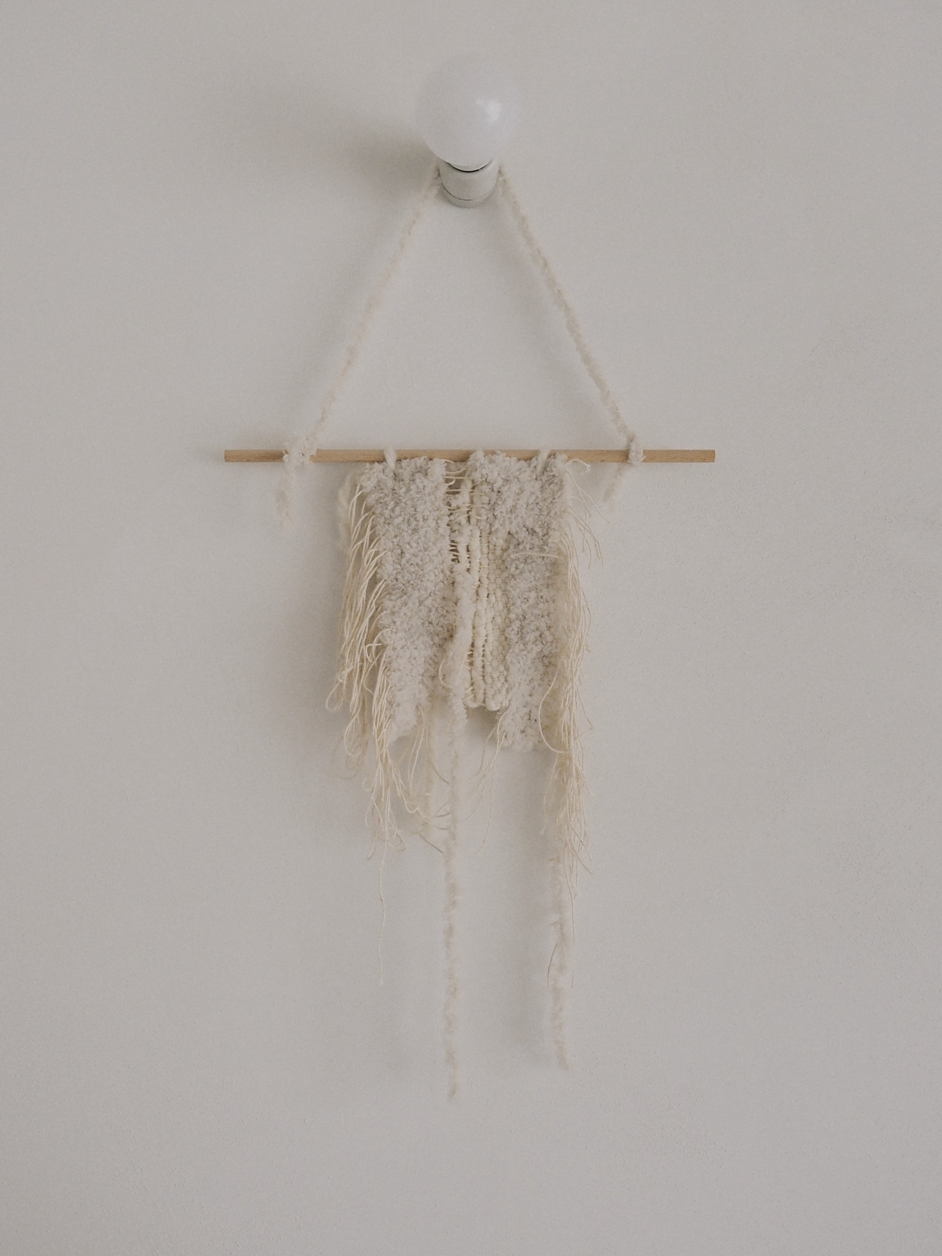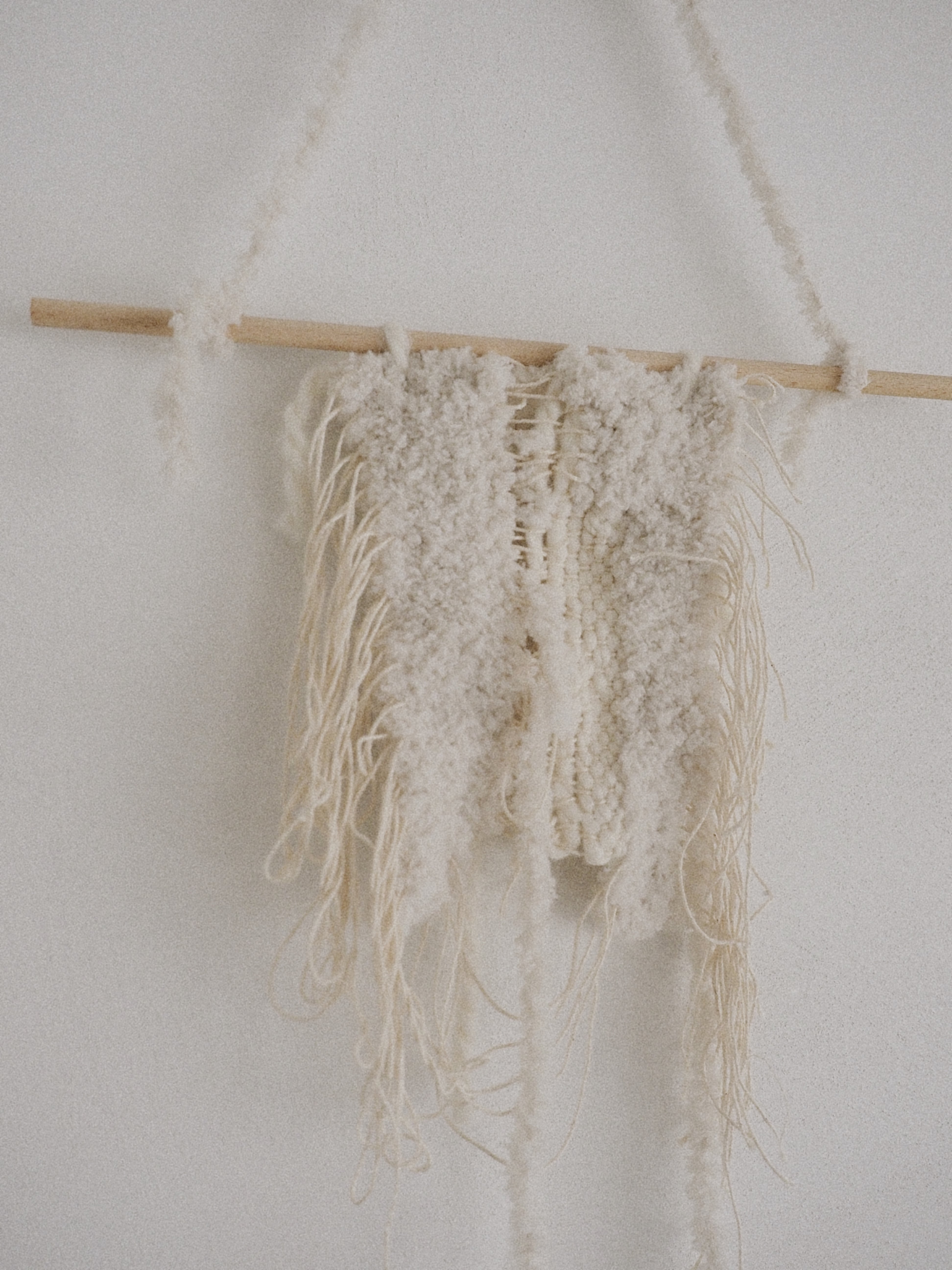 一度綺麗に編んだものを切ったり緩めたり、わざと半壊させたもの 意図が絡み合う様子や、細い網目によって太い糸が状態を保つ様子を楽しむためのもの size タペストリー本体 W15cm H39cm 棒 W30cm ぶら下げた時の全長60cm ※サイズには多少の誤差が生じる場合がございます。