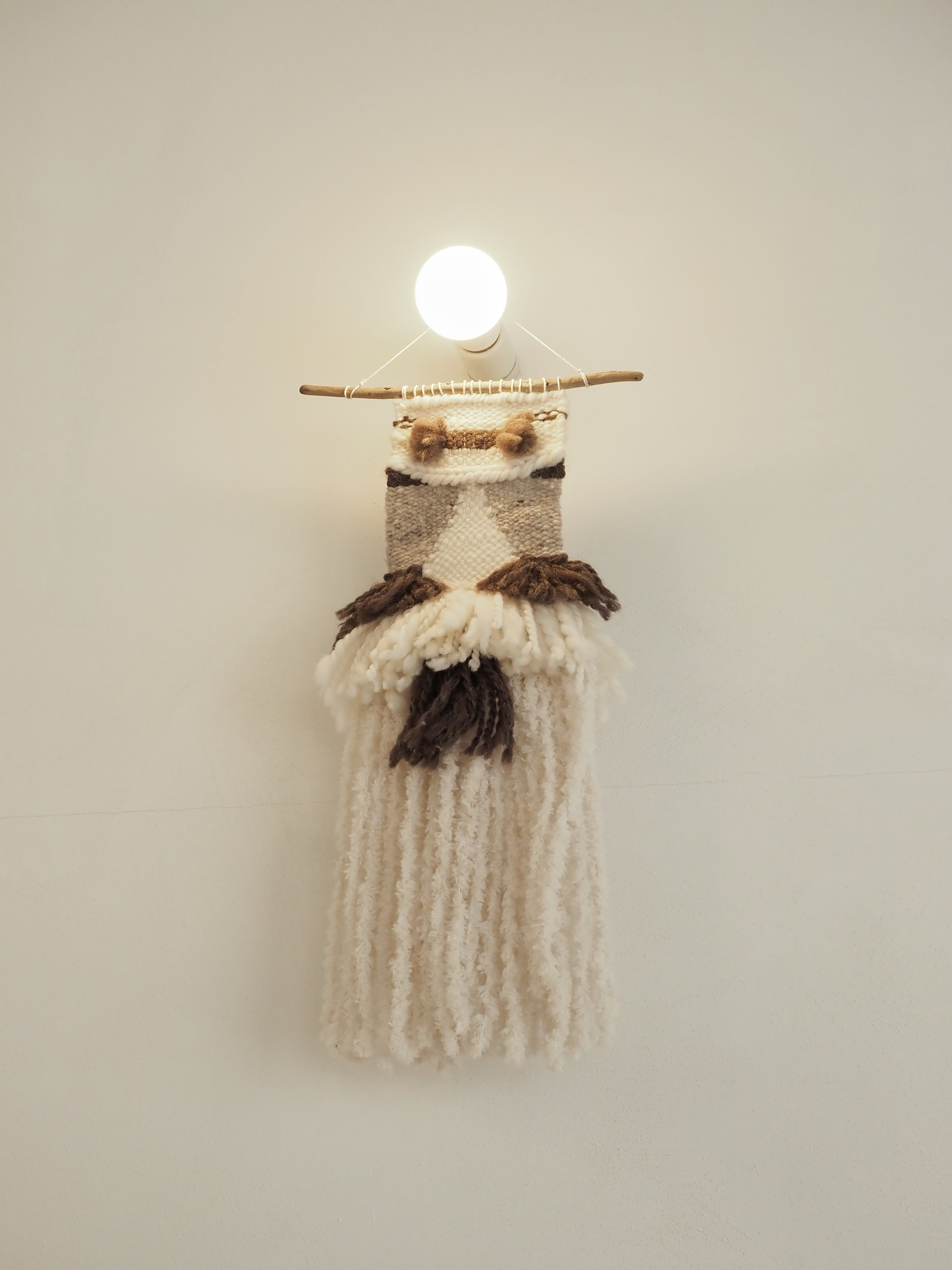 wool フリンジ部分はウールのリサイクル糸を使用しています。さらさらと心地の良い肌触りです。 size タペストリー本体 W135mm H510mm 流木 H210 ※サイズには多少の誤差が生じる場合がございます。