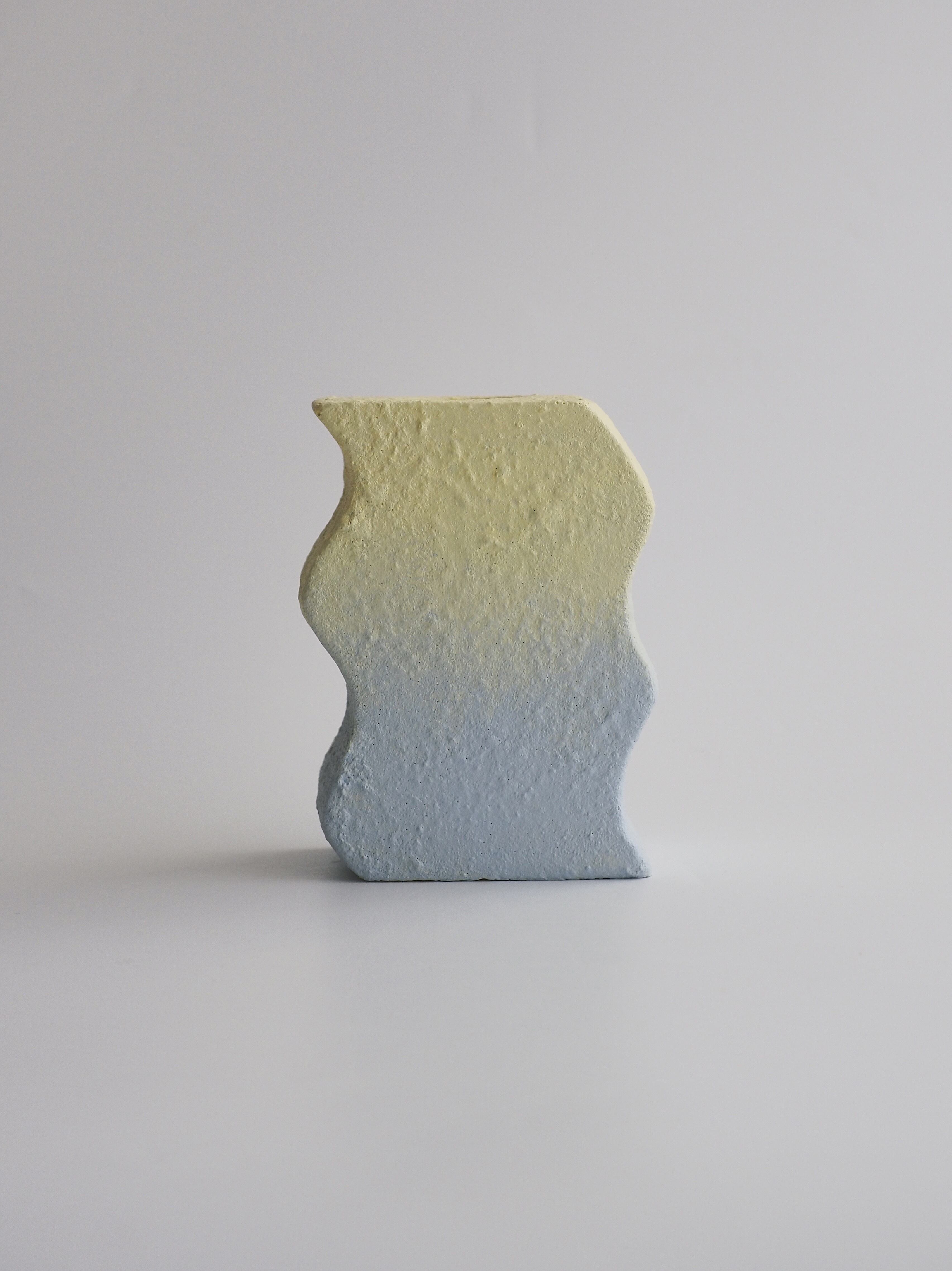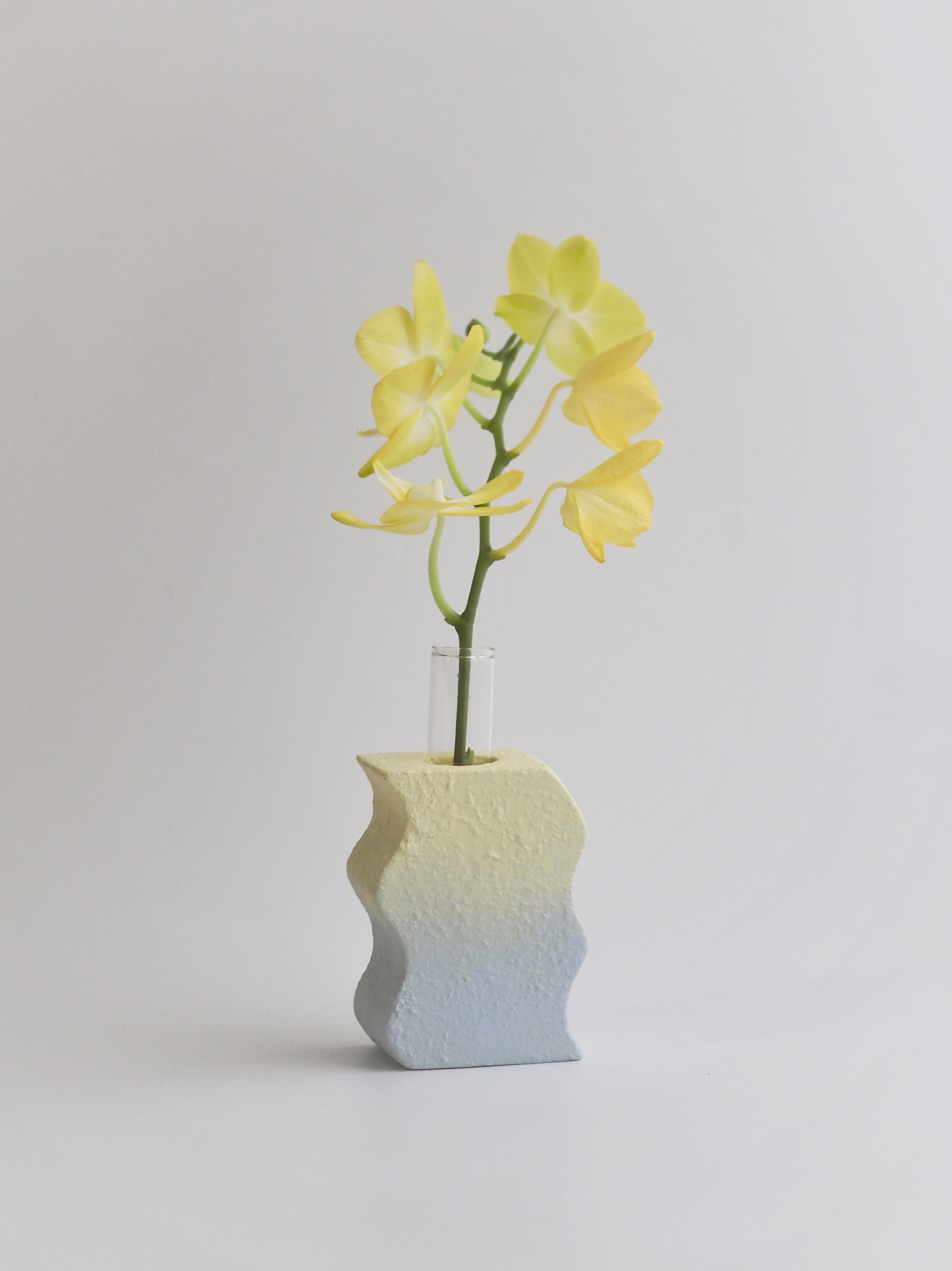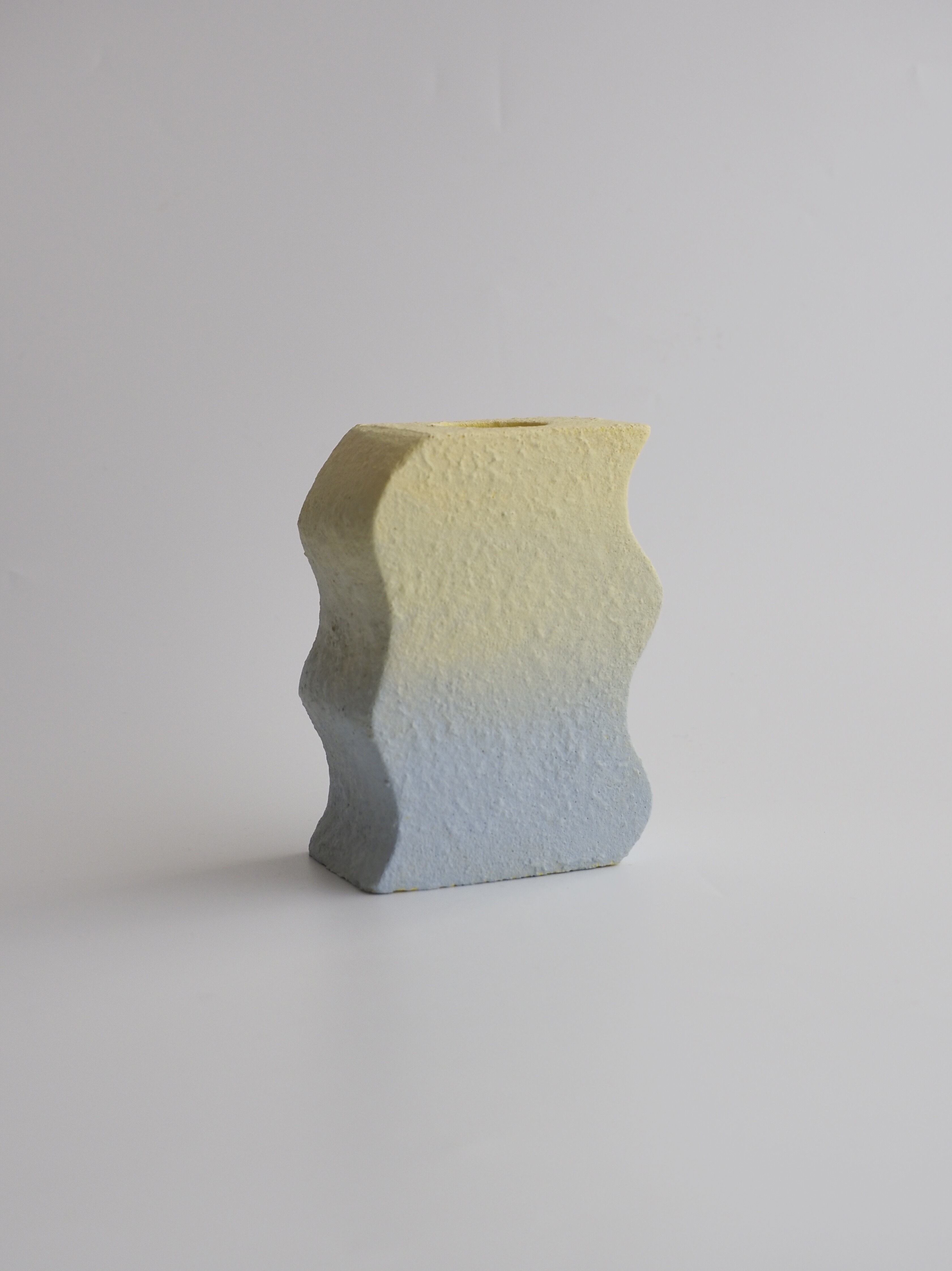 歪みや皺、気泡を残し石をそのまま削り出したような手触りの、ずっしりとした一輪挿しです。